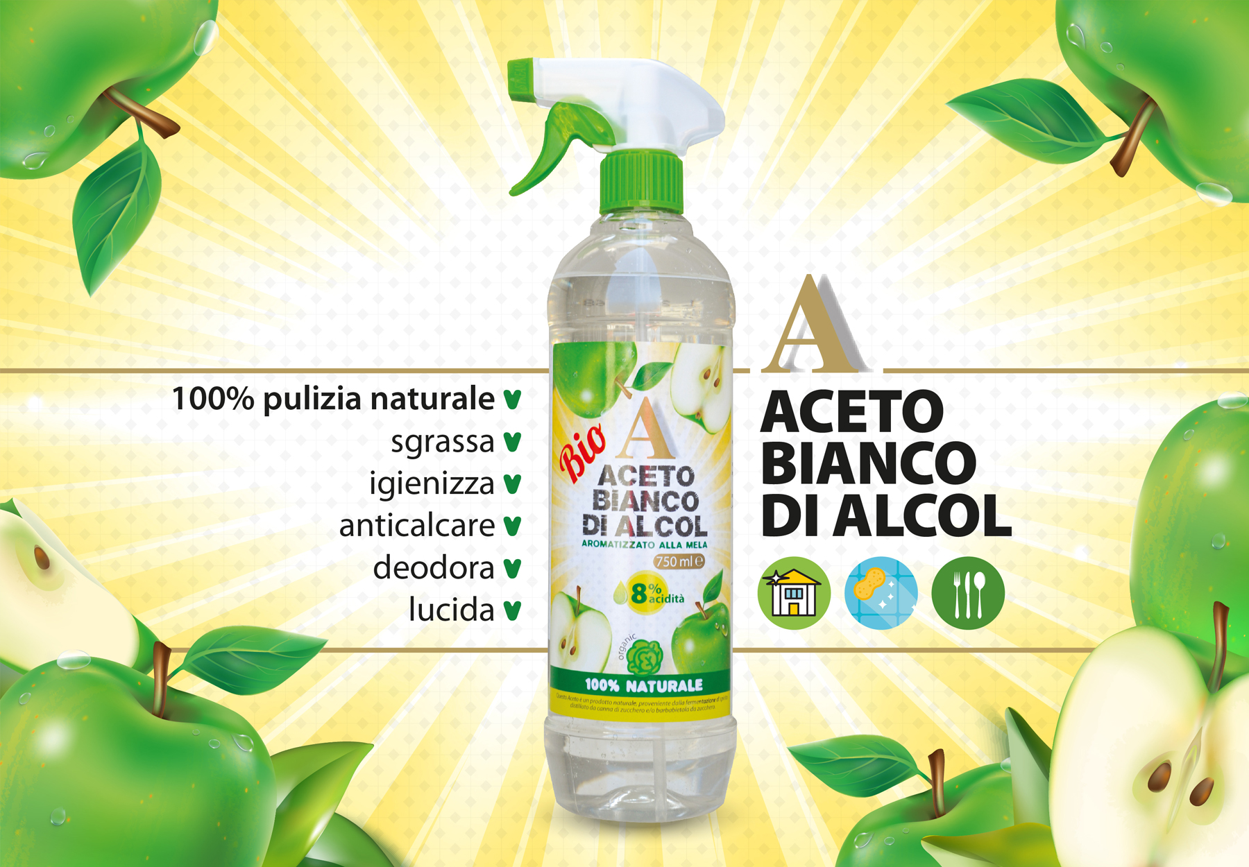 La nostra linea di Aceti Biologici prodotti da Vini Biologici e da Succo Concentrato di pregiate Mele Biologiche,